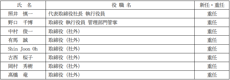 6月荷開催する第28回 定時株主総会に付議する取締役候補者は以下のとおり。定時株主総会とその後の取締役会を経て正式に決定する予定だ。