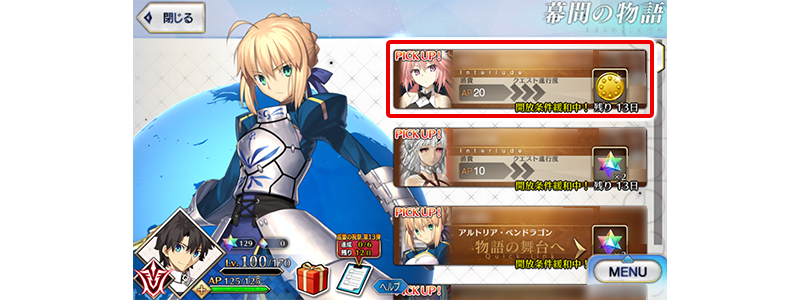 ◇期間限定でピックアップ対象の「幕間の物語」をサーヴァント未所持でも開放