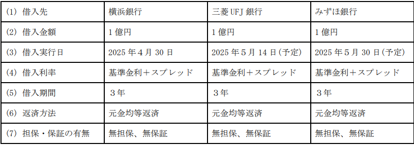 GLOE<9565>は、5月9日、横浜銀行、三菱UFJ銀行、みずほ銀行からそれぞれ1億円ずつ資金の借り入れを行うと発表した。