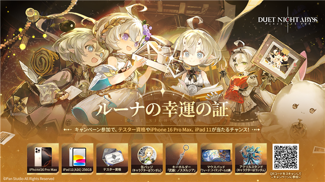 CBT2テスター応募受付開始にともない、特設サイトも同時公開した。特設サイトにてルーレットに参加すると、テスター資格のほか、iPhone16 Pro Max、iPad 11や「デナアビ」限定オリジナルグッズなどが当たるチャンスがある。