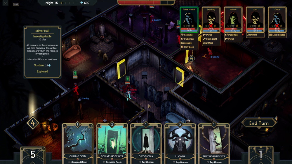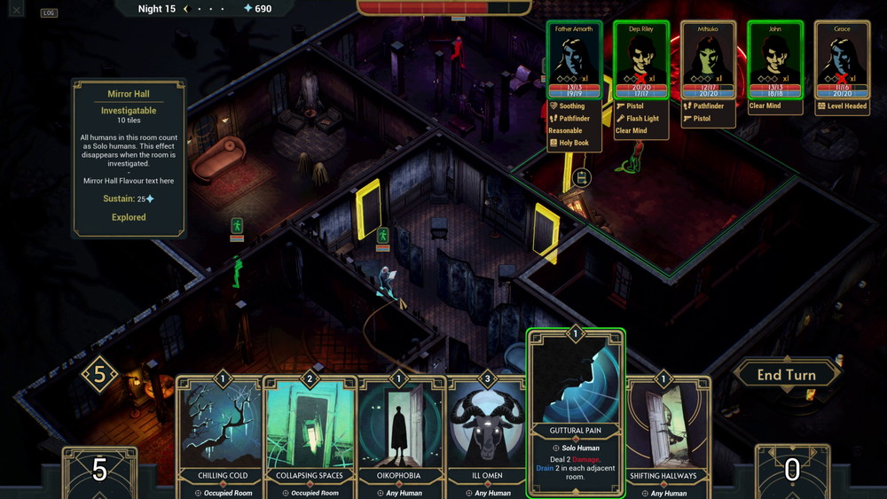 だが、館が悪名を轟かせたとて、試練がなくなるわけではない。多くのエキスを奪えば奪うほど、現実主義の警官から神聖な悪魔祓い、不気味なストーン・メイソンなど、より力を持つ敵が現れ館の恐怖支配を終わらせようと挑んでくる。