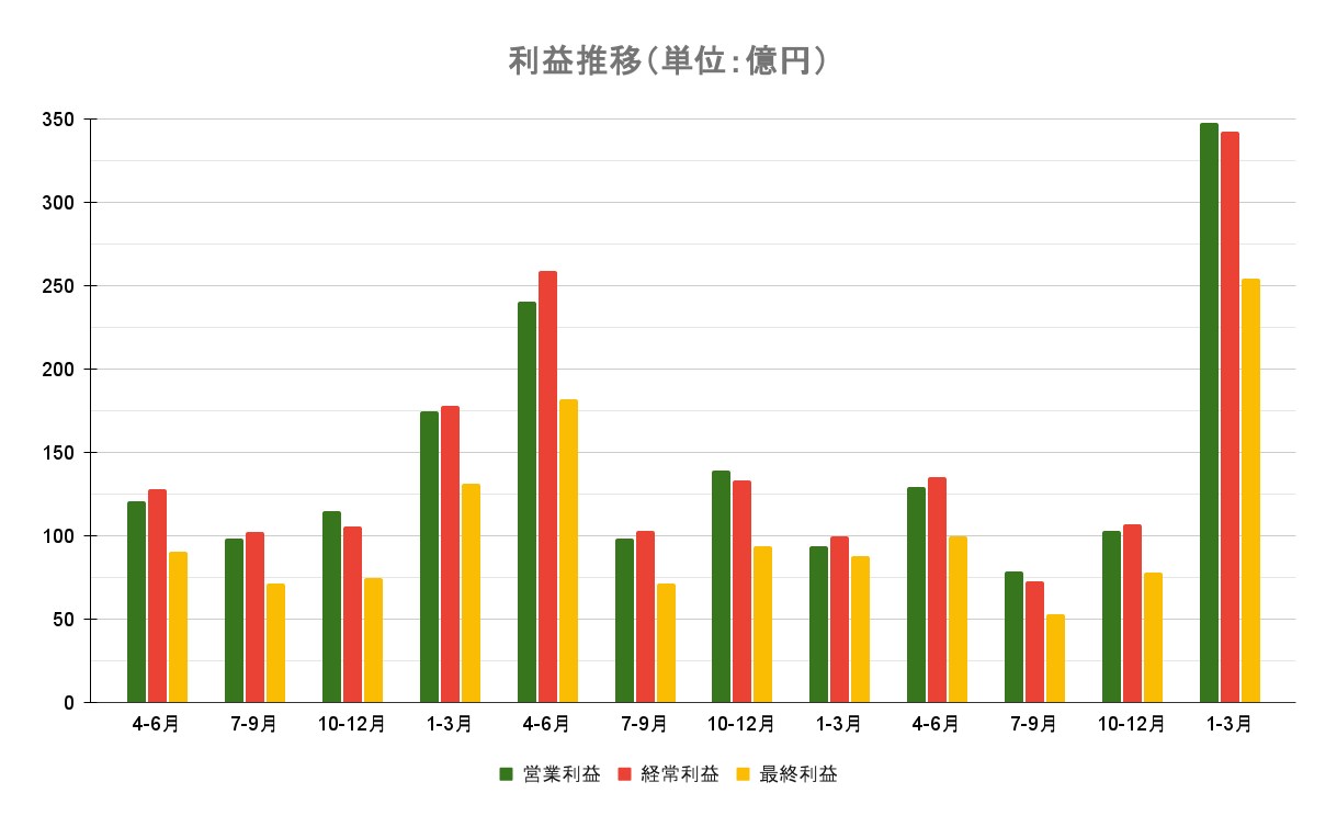 最終利益510億円(同5.3%増) - ※過去12四半期分の四半期業績推移のグラフを追加しました。