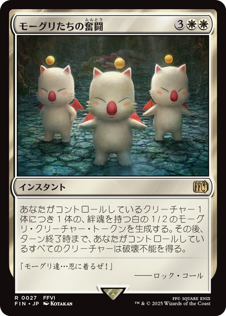 「FINAL FANTASY」シリーズの⼈気キャラクター、チョコボを描いた《桃源郷の探求者、チョコ》、そしてシリーズを通して親しまれてきたモーグリたちの活躍を描いた《モーグリたちの奮闘》のカードが、それぞれ公開された。⼩さな体ながらも仲間のために奮闘するその姿は、多くのファンの共感を呼ぶことだろう。