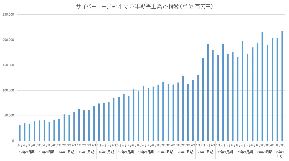 サイバーエージェント<4751>は、5月15日、2025年9月期 第2四半期累計の連結決算を発表し、売上高4212億1400万円(前年同期比3.4%増)、営業利益291億6900万円(同9.7%増)、経常利益291億7800万円(同8.0%増)、最終利益158億6300万円(同74.2%増)だった。