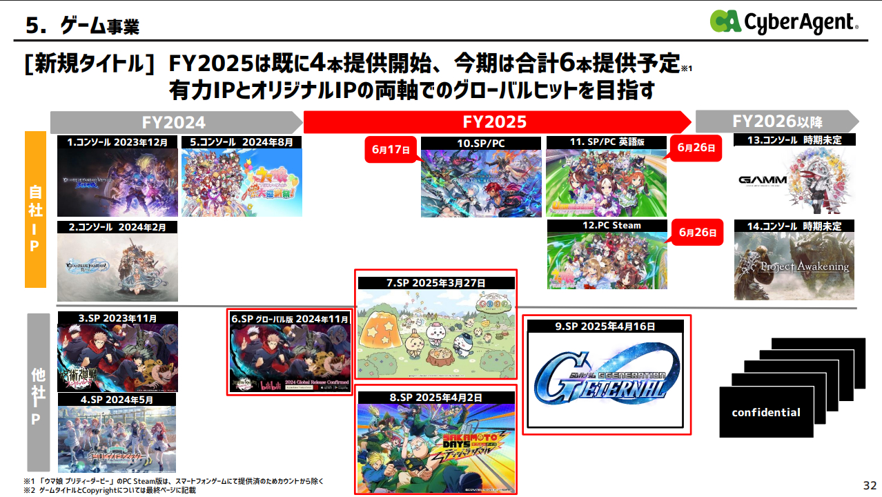 これ以外に『ちいかわぽけっと』と『SAKAMOTO DAYS デンジャラスパズル』の配信も開始したが、どちらも「大体計画通りの推移」を辿っているとのこと。2025年9月期中に新作は[『ウマ娘 プリティーダービー』のSteam版と英語版をリリースする予定だ。