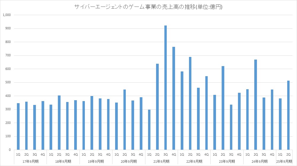 前年同期に発売して大ヒットしたコンソールゲーム(『GRANBLUE FANTASY: Relink』とみられる)に相当するものがなかったため、反動減となった。このゲームは24年9月期の業績予想の上方修正の要因になるほどの影響だった。