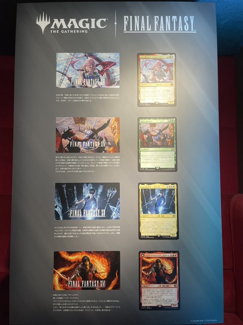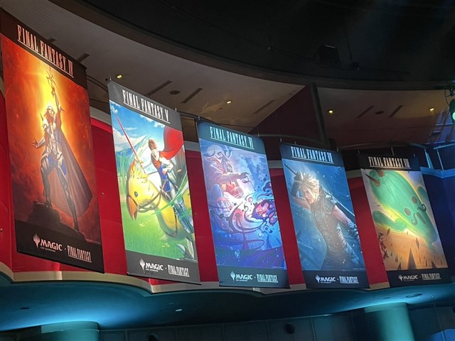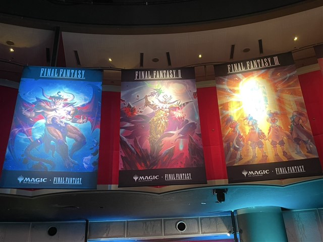 ▲『マジック:ザ・ギャザリング――FINAL FANTASY』の世界観を表現したフォトパネルや垂れ幕など、本セット一色に彩られていた。