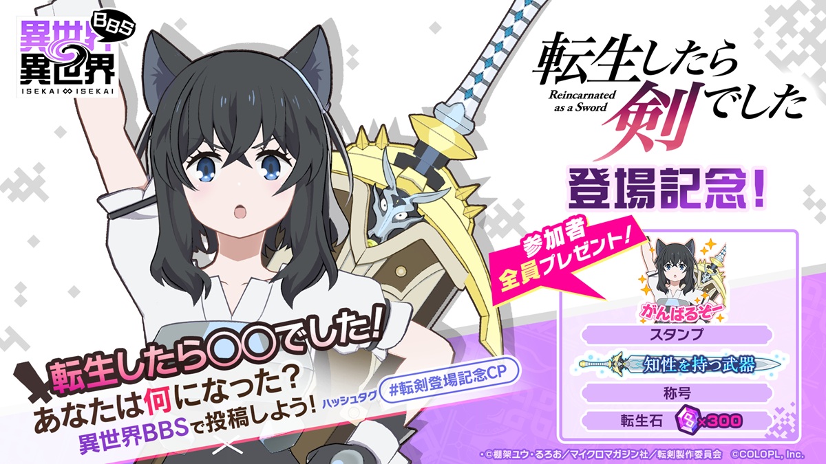 ■『異世界∞異世界BBS』にて、 転生したら剣でした 登場記念キャンペーン! 開催