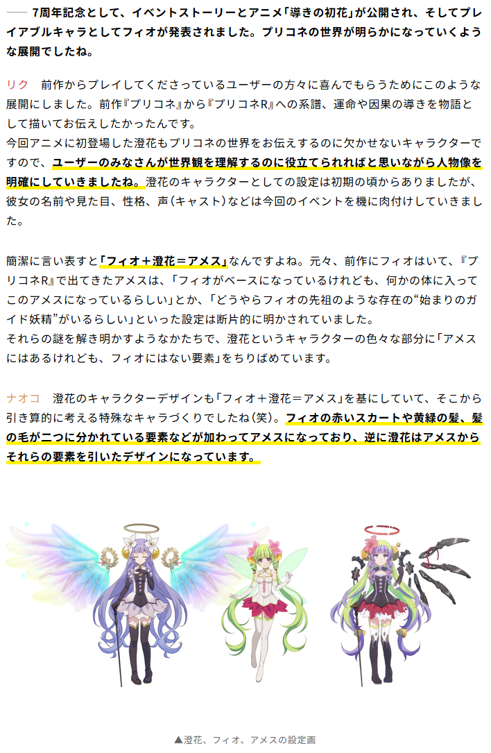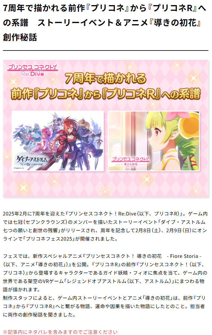 記事の内容は、7周年で描かれる前作『プリコネ』から『プリコネR』への系譜、ストーリーイベント&アニメ『導きの初花』創作秘話だ。