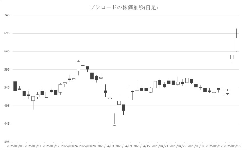 5月19日の東京株式市場では、ブシロード<7803>が連日の年初来高値更新。5月15日に発表した2025年6月通期の業績予想の上方修正を評価した買いが引き続き入っているようだ。