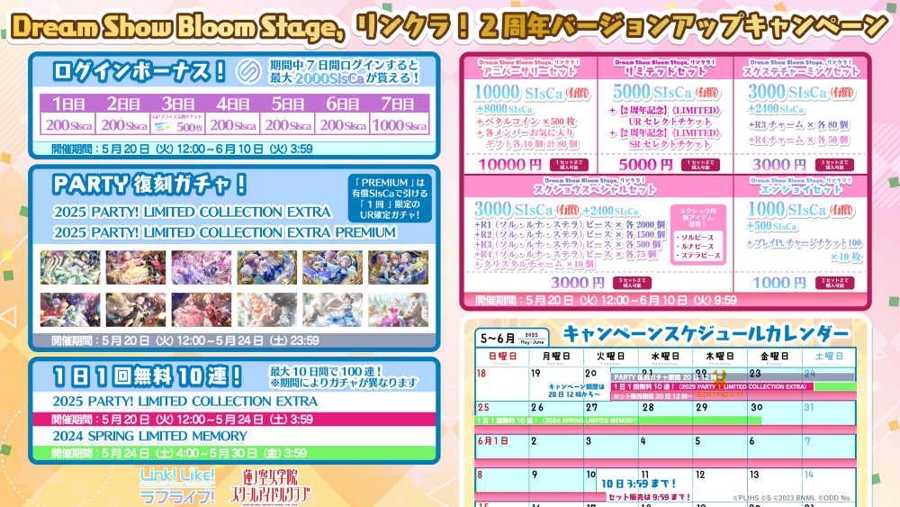 「Dream Show Bloom Stage, リンクラ!2周年バージョンアップキャンペーン」の内容