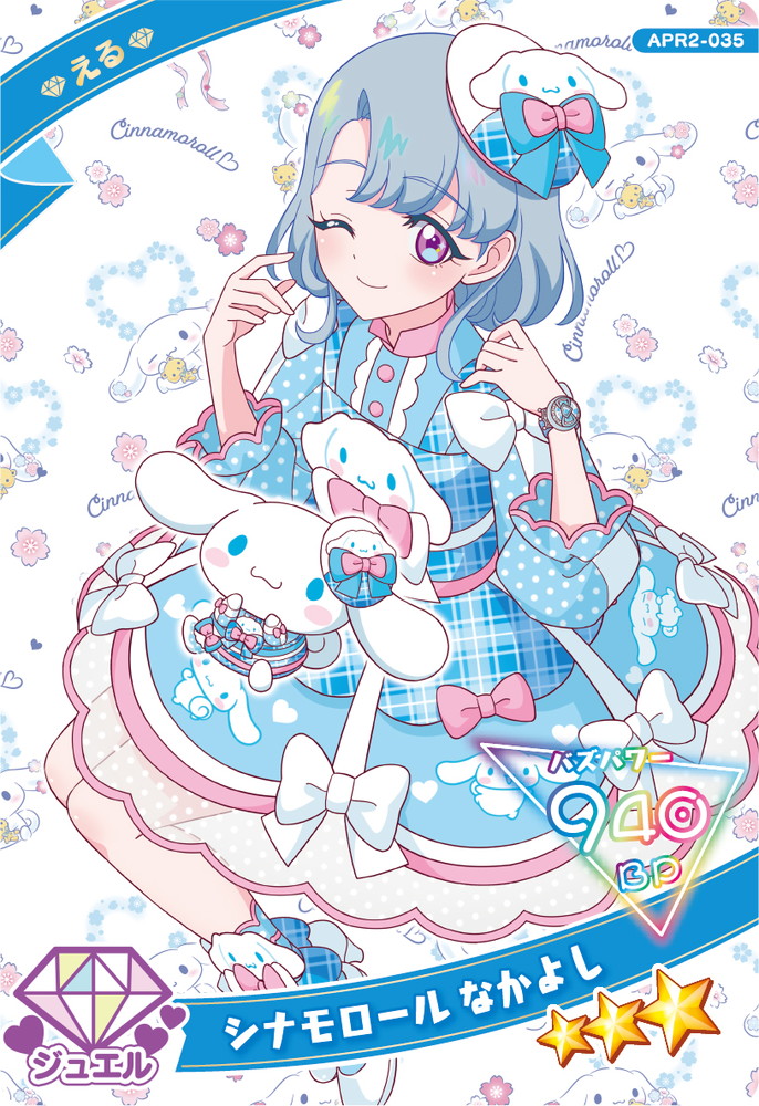 「リング2だん」では昨年も好評だったサンリオキャラクターズコラボを展開する。今回のコラボキャラクターは「ひまり(マイメロディ)」「みつき(クロミ)」「つむぎ(こぎみゅん)」「チィ(ハンギョドン)」「じゅりあ(ハローキティ)」「える(シナモロール)」「すばる(ポチャッコ)」「おとめ(ポムポムプリン)」の8種類で、コラボアイプリカードには、新作コラボコーデを着たサンリオキャラクターズとアイプリのイラストが描かれている。カードをゲームで読み込むと、コラボコーデを着たアイプリのライブを楽しむことができる。