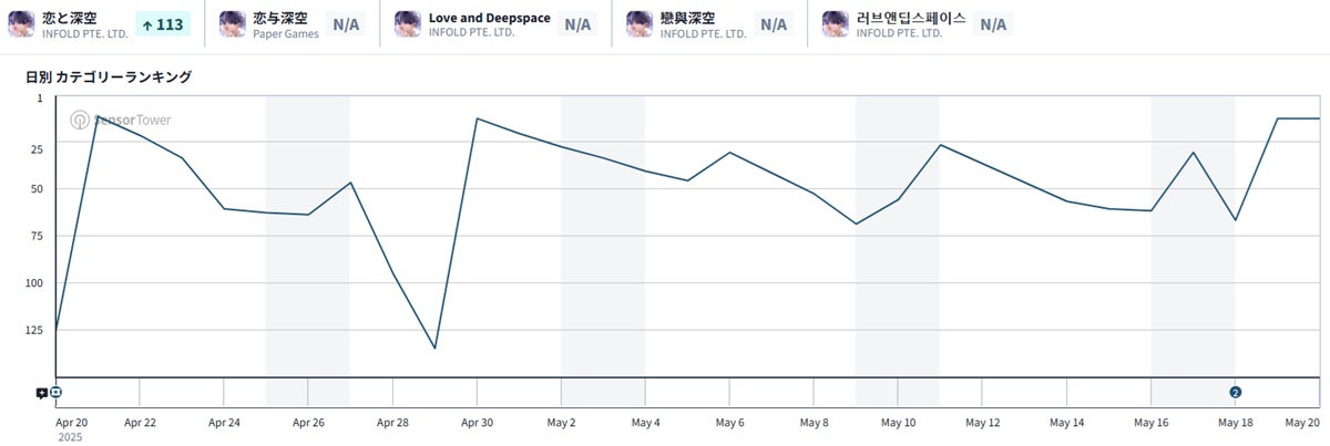 | 23 | 13 | ↓10 | 恋と深空 | INFOLD |