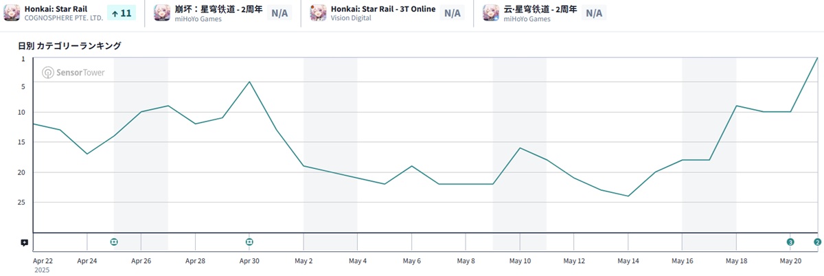 | 9 | 20 | ↑11 | 崩壊:スターレイル | COGNOSPHERE |