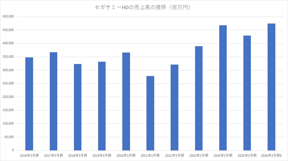 セガサミーHD、26年3月期決算は売上高10%増の4750億円、営業益10%増の530億円を計画…遊技機事業がけん引、エンタメは新作ゲーム投入も小幅減益に