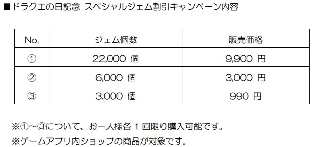 ■ドラクエの日記念 スペシャルジェム割引キャンペーン開催期間