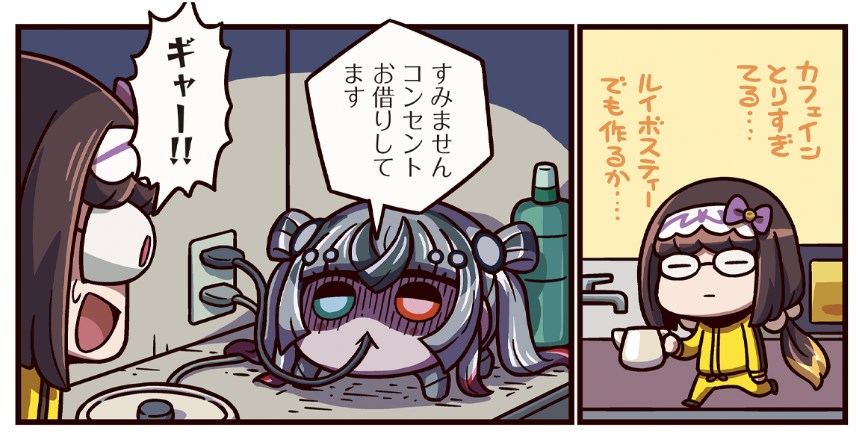 電気ケトルでお湯を沸かしにきた刑部姫。と思ったらコンセントに繋がった生首が!?
