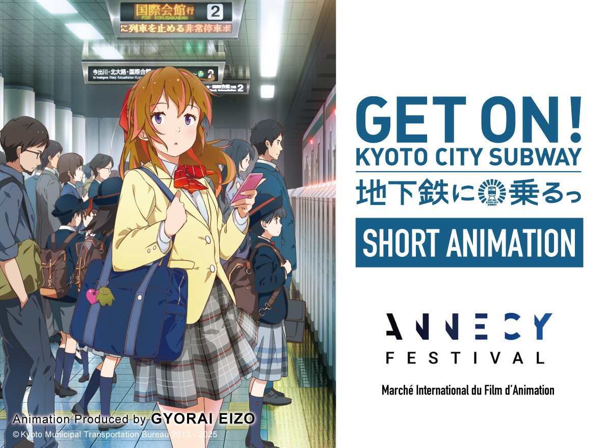 魚雷映蔵が企画・制作した、京都市交通局の短編アニメーション作品「地下鉄に乗るっ」が、フランス・アヌシーにて開催される世界最大級のアニメーション映画祭「アヌシー国際アニメーション映画祭2025」併設のビジネスマーケット・MIFA(Marché international du film d’animation)内「インディーアニメ特集」ブースの上映・展示作品として選出された。