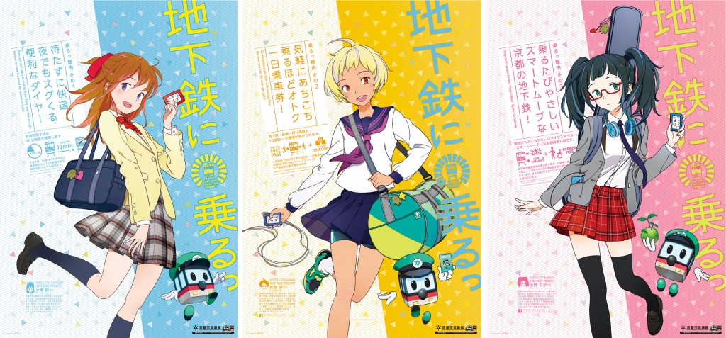 「地下鉄に乗るっ」は、京都市営地下鉄・市バスの利用促進を目的とした、地下鉄・市バス応援キャラクター「太秦萌」、「松賀咲」、「小野ミサ」、「太秦麗」、「小野陵」、「十条タケル」らによるPRコンテンツ。平成25年に地下鉄利用促進ポスターに採用されて以来、京都市交通局の関連広報のみに留まらず、様々な広報媒体に展開している。