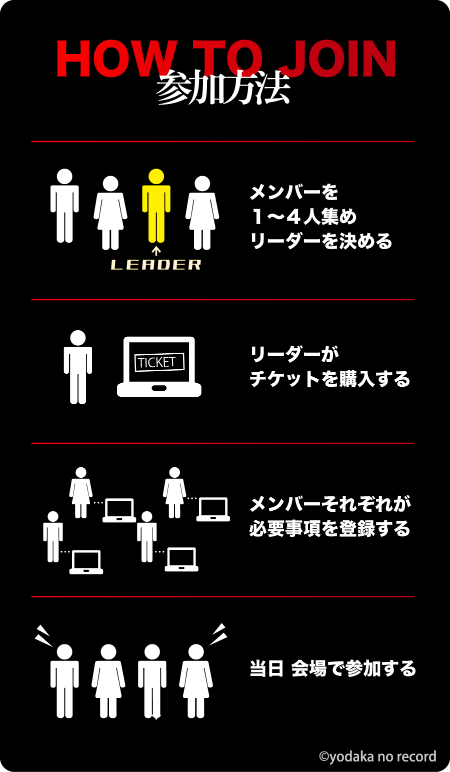 1人から最大4人が1組で、この競技内のチームメンバーとなり、大会登録を行う。※