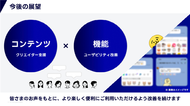 リアクションとして利用できる絵文字のバリエーションはおよそ24万種類以上。この独自性こそがLINEのリアクションのユニークさであると材木氏は述べた。今回、利用範囲をリアクションにまで広げたことで、今後のラインナップもさらに拡大できる見通しとなっていると展望を話した。