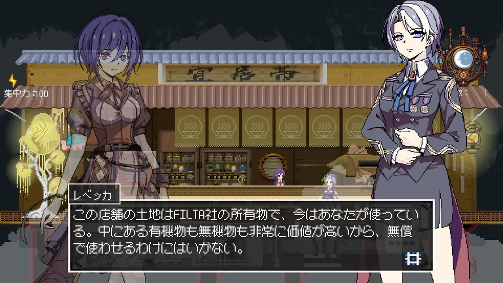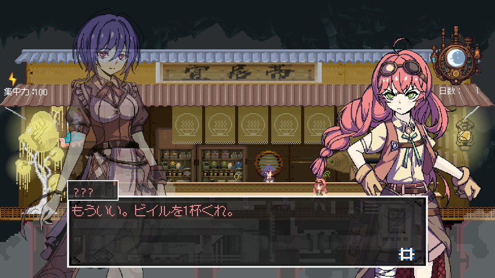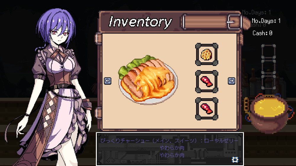 あなたが姉の店を引き継いだのと同じ頃、他の勢力もこの店に目をつけている。プレイヤーは家賃を支払うため十分な収入を得なければ、会社によって強制的に店を回収されてしまう。夜になると、新規のユーザーだけでなく、お姉さんのお店の常連さんも訪れる。お姉さんが残したレシピを参考に、ユーザーの記憶に残る味を再現し、に満足できる料理を作りたい。もちろん、あなた自身も食事をとる必要がある。毎日の食材収集を始める前に、ロボットメイドに朝食を作ってもらう。料理を食べると、探索中に特別な効果を得られる。例えば反撃ダメージの向上、最大HPの増加、さらには三段ジャンプが可能になるなど、さまざまな能力が手に入る。これらのバフ効果を活用して、より深いエリアへの冒険に挑戦したい。