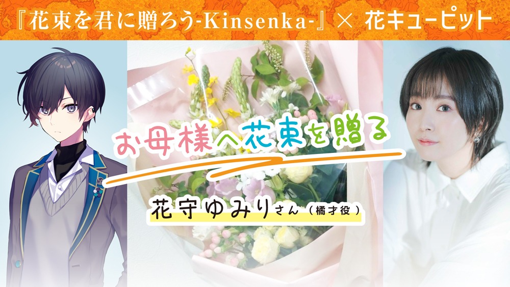 タイトル『花束を君に贈ろう-Kinsenka-』にちなみ、ゲーム出演キャストから大切な人に花束を贈るという企画を実施。第1弾は、主人公・橘 才役の花守ゆみりさんからお母様へ。「一般社団法人JFTD花キューピット」協力のもと、素敵な花束を贈っている。