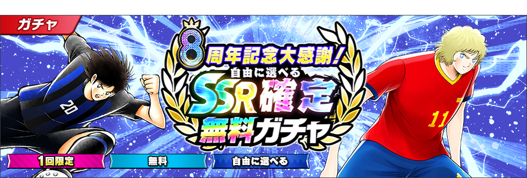 8周年記念大感謝!自由に選べるSSR確定無料ガチャ