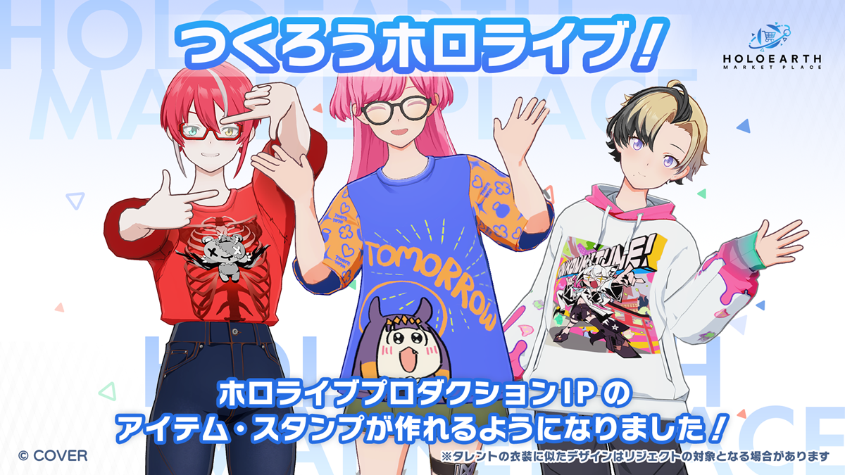 ホロアースマーケットプレイスにて「ホロライブプロダクション」ライセンスを使用してのアイテム作成が可能になった。