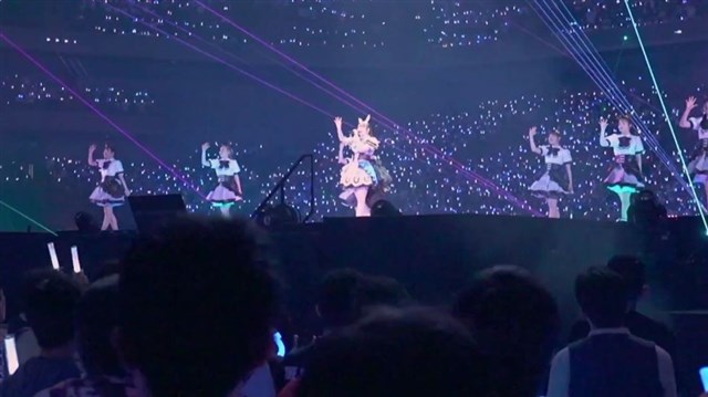 トークを挟み、2曲目に披露されたのは、羊宮さん、紫月さん、石原さん、中島さん、夏目さん、久保田さん、真名瀬さん、小田さんによる「GIRLS‘ LEGEND U」。ラストのサビ前からステージの中央がせり上がる豪華な演出に、会場はさらに盛り上がりを見せた。