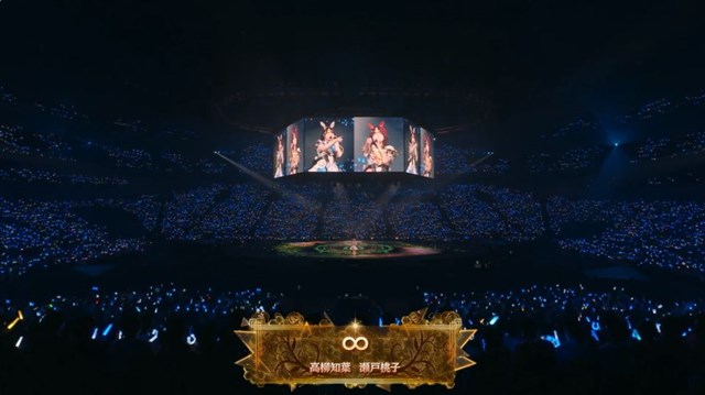 さらに続けて、高柳さんと瀬戸さんがアニメ『ウマ娘 シンデレラグレイ』のED主題歌「∞」を歌い始めると、大きな歓声が上がり、オグリキャップとベルノライトそれぞれのカラーのペンライトが会場を埋め尽くす。