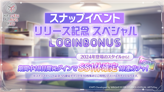 スナップイベントのリリースを記念して、10日間ログインで SS 確定 10 連ガチャが引けるスペシャルログインボーナスも開催!