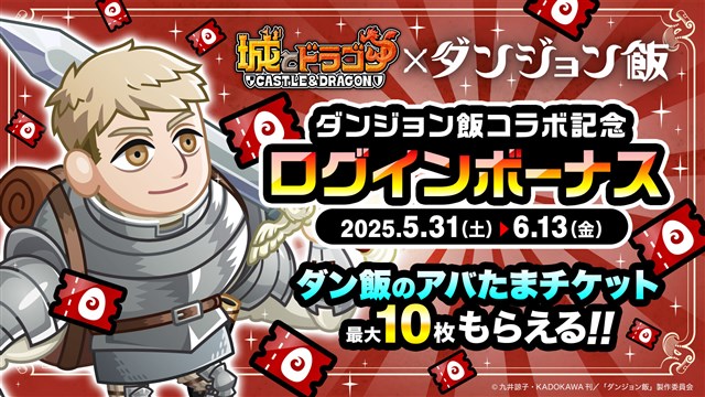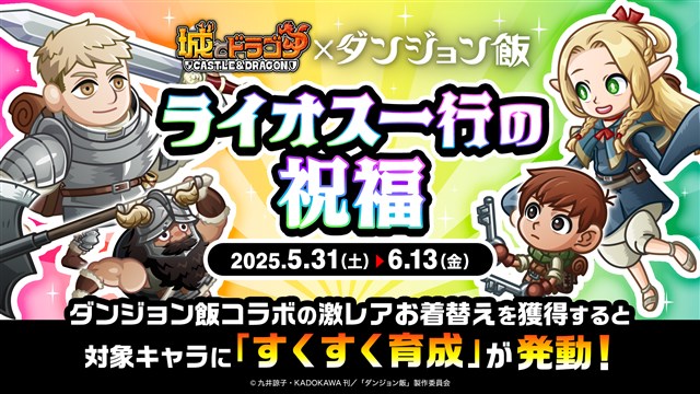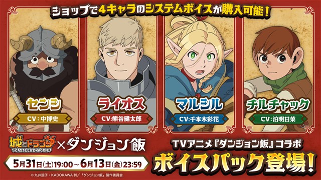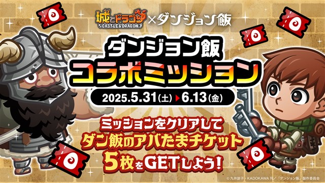 アソビズムは、『城とドラゴン』において、TVアニメ『ダンジョン飯』との初のコラボイベントを5月31日19:00より開催する。