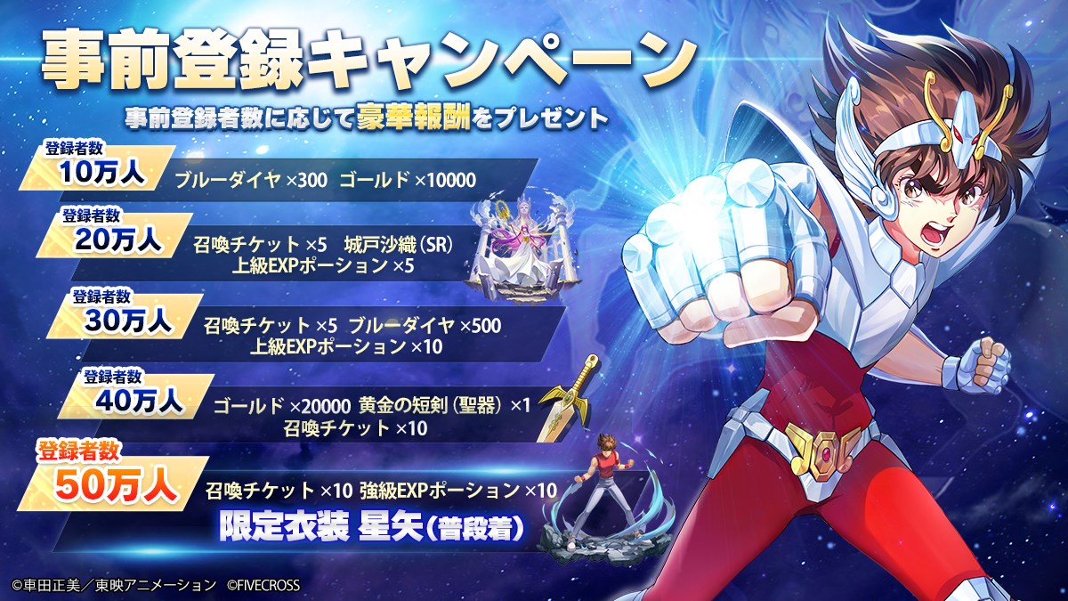ファイブクロスは、本日(5月30日)より、アニメ「聖闘士星矢」の完全新作スマホRPG『聖闘士星矢 Galaxy Soldiers』(以下『星矢GSS』)の事前登録を開始したことを発表した。