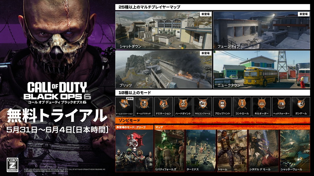 また、日本時間5月31日~6月4日の期間限定で、最新のシーズン04コンテンツを含む『Call of Duty: Black Ops 6』のマルチプレイヤーモードとゾンビモードを無料でプレイできる。