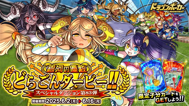 6月2日より、12周年記念スペシャルダンジョン「銀河の優駿 どらごんダービー!!」を開催する。今回のスペシャルダンジョンでは、新たに「銀河のクラシックディスタンス」「ムーンライトルゥーナ」「太陽系ダークホース」が出現し、クリアした回数に応じて竜石を手に入れることができる。一緒に冒険する仲間と協力し、ダンジョンクリアを目指そう!