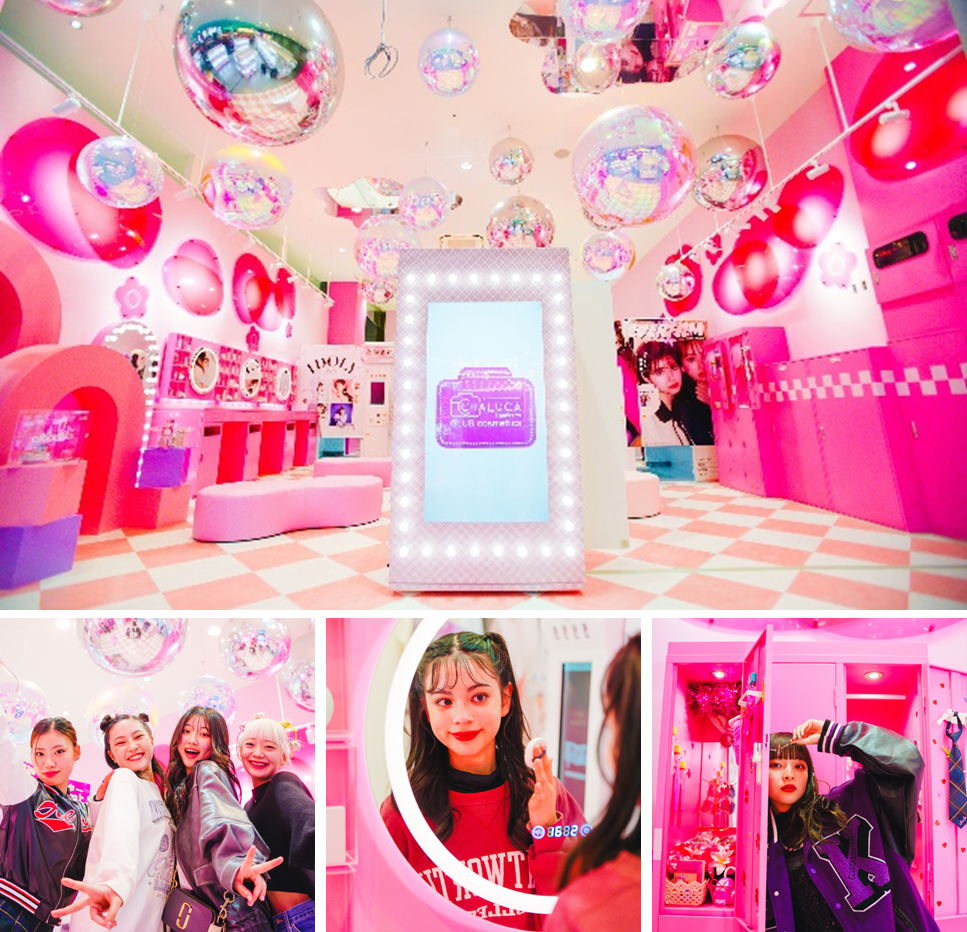 「CHALUCA」とは、「カメラのシャッター音(パシャ、カシャ)」を意味する韓国語。キュンとなる空間の中で可愛くなった自分を撮影したくなる場所。可愛くなれるコスメやカワイイ雑貨、ディスプレイがたくさんある空間を楽しみながら、若者たちが生き生きとシャッターを切る場所となっている。内装はピンクをベースにした空間に、人気・最新のプリントシール機をラインアップ。LEDメイクアップミラーを備えたパウダーコーナーと、たくさんシャッターを切りたくなるフォトスポットを備えたフォトジェニックなプリコーナーだ。
