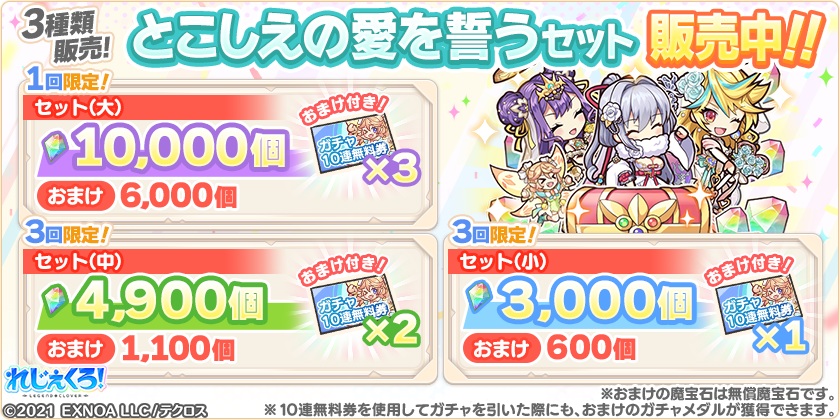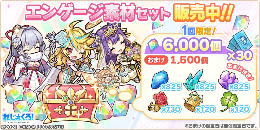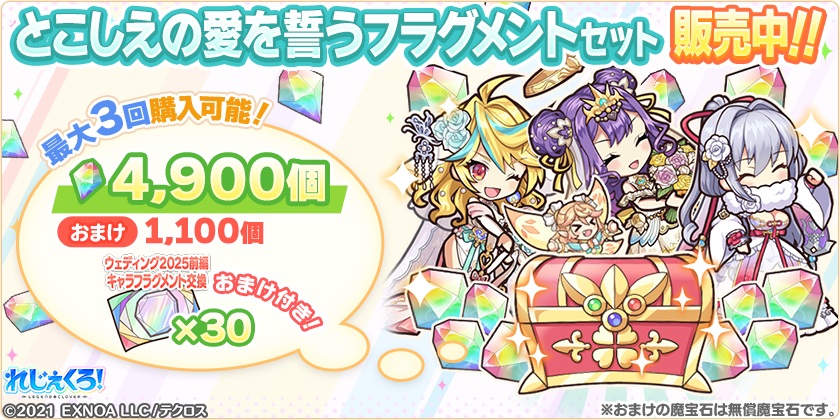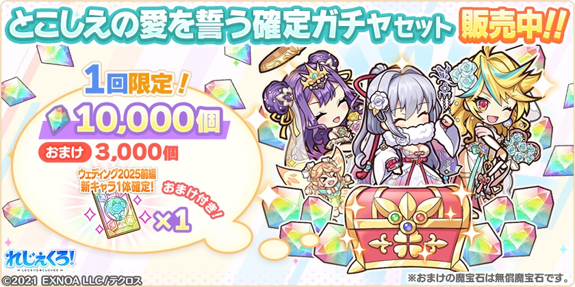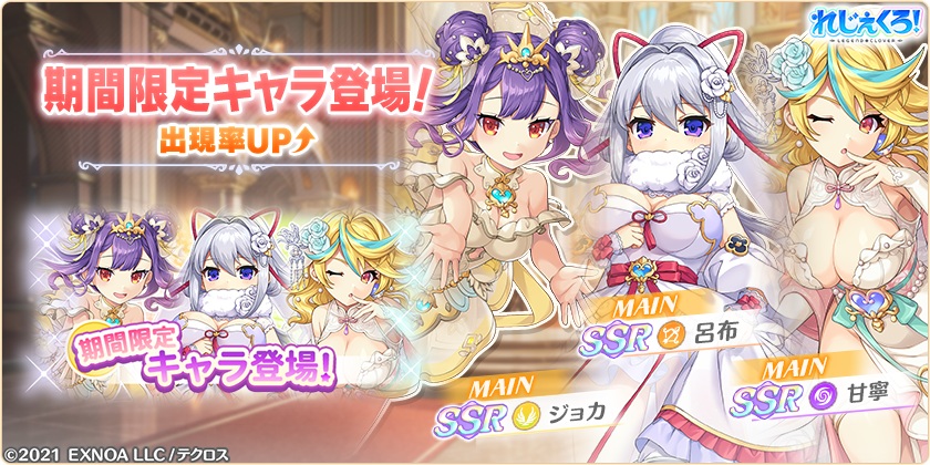 EXNOAが運営するDMM GAMESにおいて、真の英雄となる王道ファンタジー『れじぇくろ!~レジェンド・クローバー~』にて、「呂布」「ジョカ」「甘寧」が華やかなウェディングドレス姿で登場。さらに彼女たちが活躍するイベント「花嫁たちはとこしえの愛を誓う・前編」が開催。