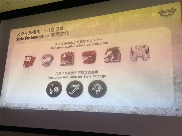 なお、スタイル強化が可能なのは、次元変異モンスターとして登場する6種のモンスターの素材を使用する武器となる。さらに、スタイルの選択が可能なのはその中で「片手剣」「太刀」「ライトボウガン」の3種類。他の武器種のスタイル追加についても今後随時予定している。