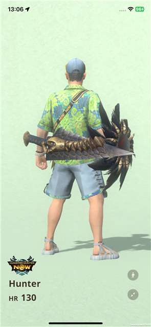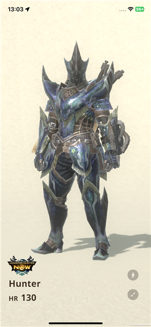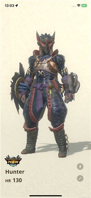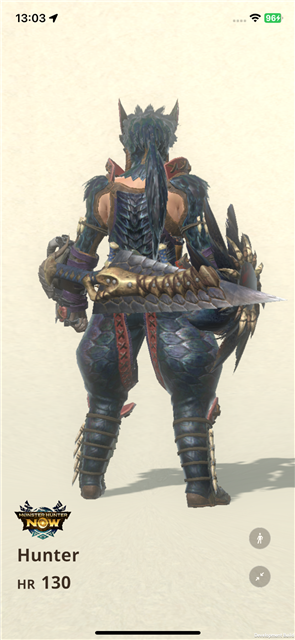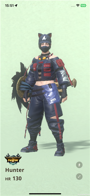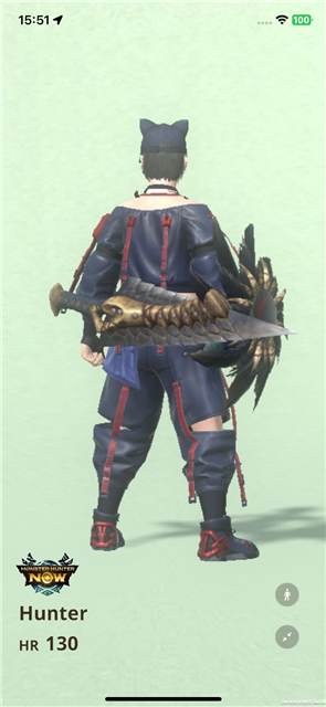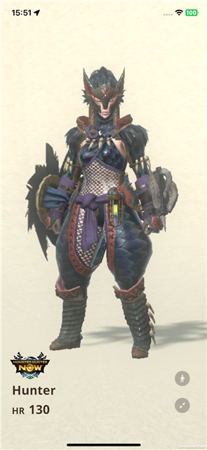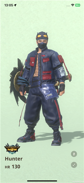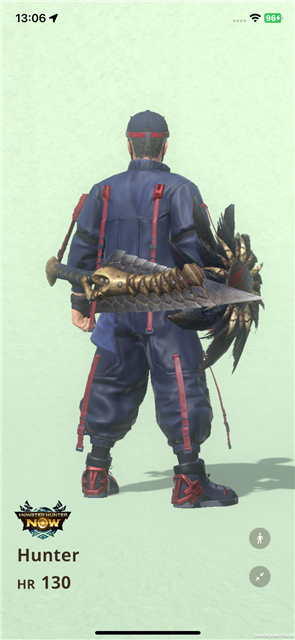 シーズン5より登場した、モンスターをモチーフにした重ね着装備の第3弾。ナルガクルガのクールなカラーや眼の赤い残光をイメージしたベルト、ナルガクルガ防具の特徴であるメッシュも取り入れている。