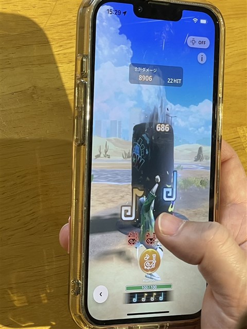 長押しで武器を納刀して最大3段階まで溜めることが可能となる。解放することで気刃解放斬りといった強力なアクションを繰り出すことができる。溜め中はゲージが溜まっていれば上下左右にフリックすることでステップが可能。