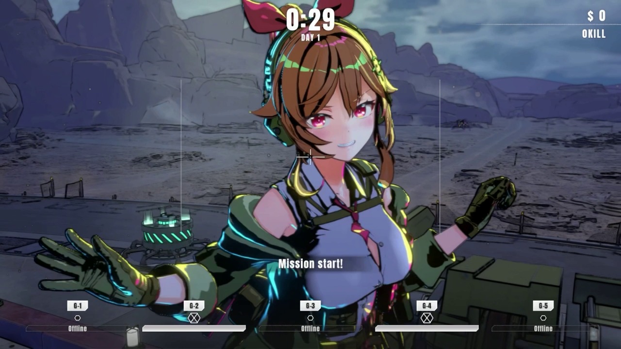 タレットに乗り迎え撃つ少女が、大挙して押し寄せる外来生物から防御する最後の砦だ。援護もなければ撤退もできない。あるのは銃撃と根性、そして少女の帰りを待つご褒美のオムライスだけだ。