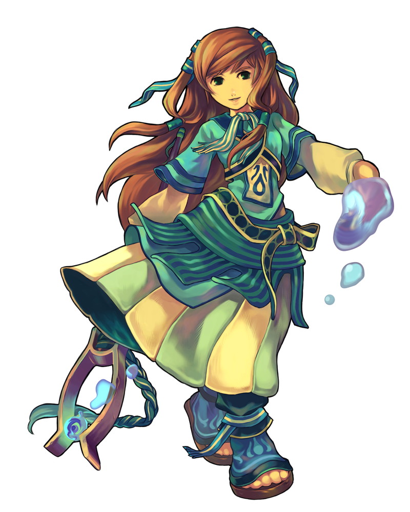 水と空気の精アプサラス。魔法戦士協会の唯一の「一級魔導師」として、水と風の魔法を操る。ヴィマルとの間に子供が出来たばかりだが、北ミスティア王に召集され、魔王討伐を命じられる。