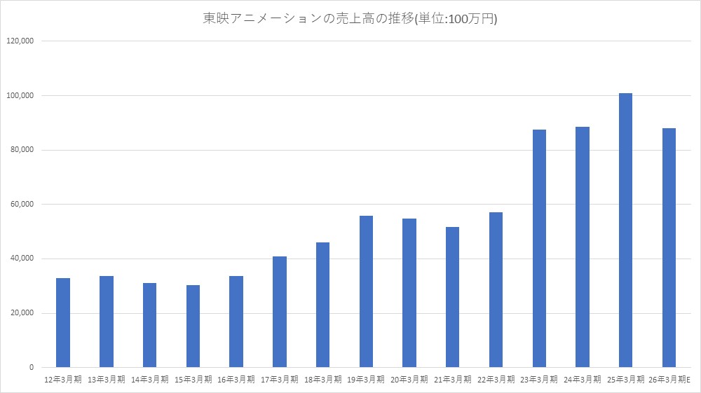 東映アニメ、26年3月期は売上高880億円、営業利益260億円と2ケタ減収減益を計画 25年3月期は減益予想だったが最終的には最高業績で着地