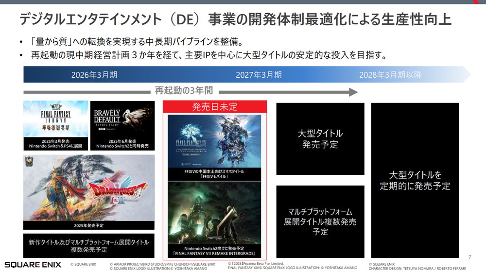 スクエニHD、26年3月期は減収・営業増益を計画 「量から質」に転換、「確かな面白さ」提供する開発体制も 中計期間は成長に向けた再起動の3年に