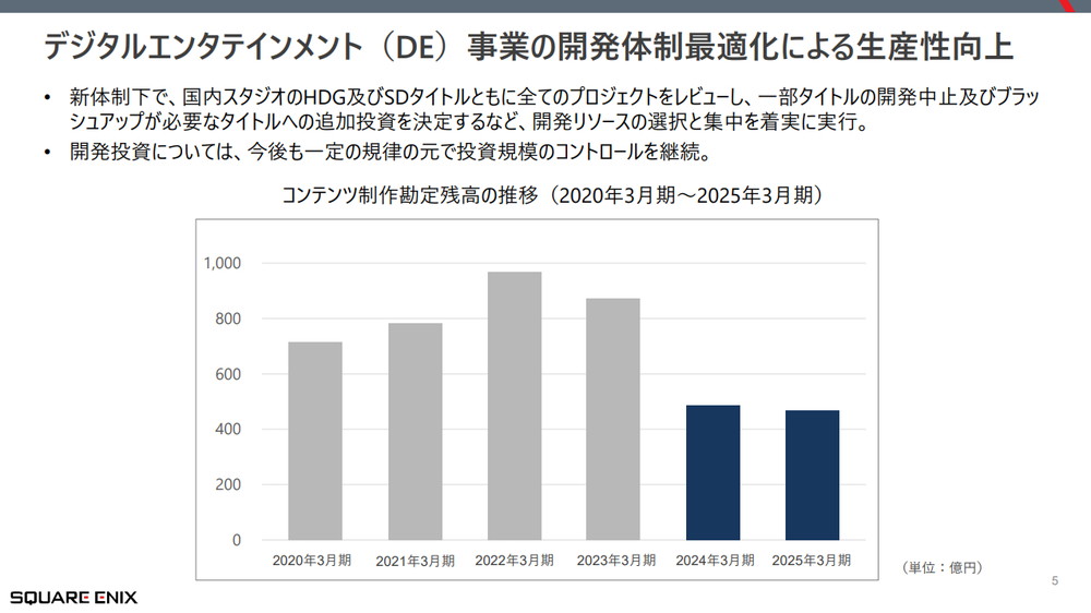 ① デジタルエンタテインメント(DE)事業の開発体制最適化による生産性向上
