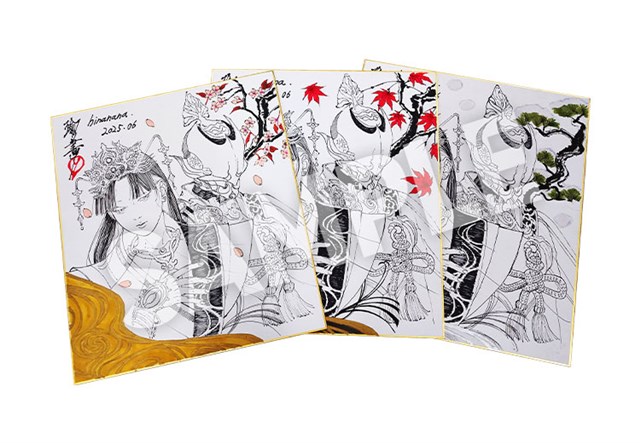 本作のアートを手掛けた「ヒナナナ」のサイン入りイラスト色紙:3名