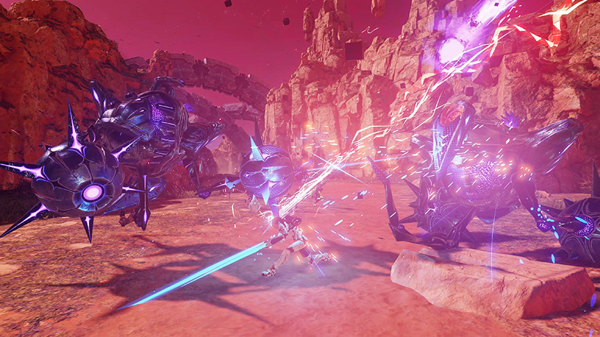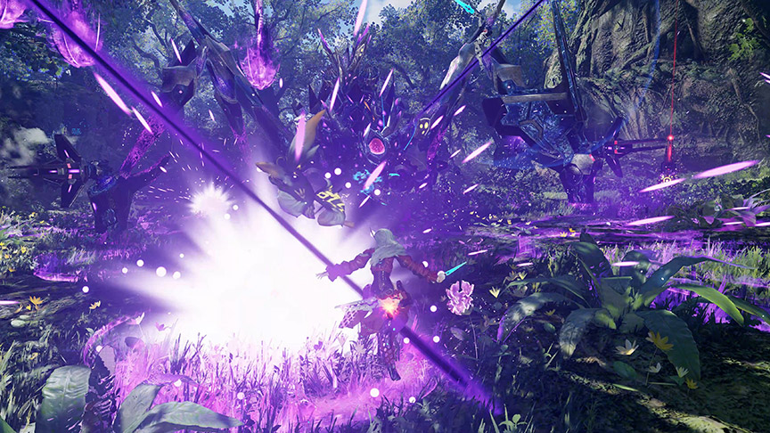 新エネミー種「スターレス」など、強大な敵との戦闘では、簡単操作の爽快なアクションでスピード感のある戦闘が楽しめる。