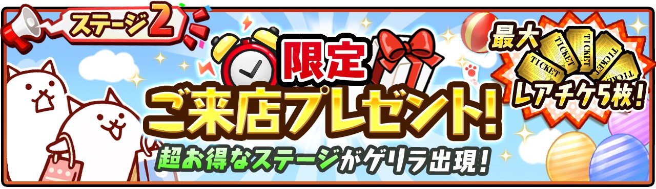 一方、「【限定】ご来店プレゼント!」はゲリラ出現でレアチケットが手に入る。イベント期間中計5回登場する、通知をオンにして、お得なステージ情報をゲットしよう!