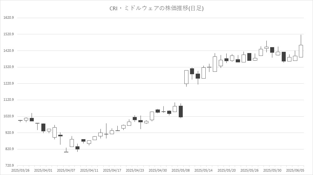 個別銘柄では、ユークス<4334>やCRI・ミドルウェア<3698>、バンク・オブ・イノベーション(BOI)<4393>、GENDA<9166>が買われた一方、KLab<3656>、enish<3667>、monoAI technology<5240>、イオレ<2334>が売られた。シリコンスタジオ<3907>がストップ高買い気配となるなど受託開発やミドルウェア系企業の上昇が目立つ。